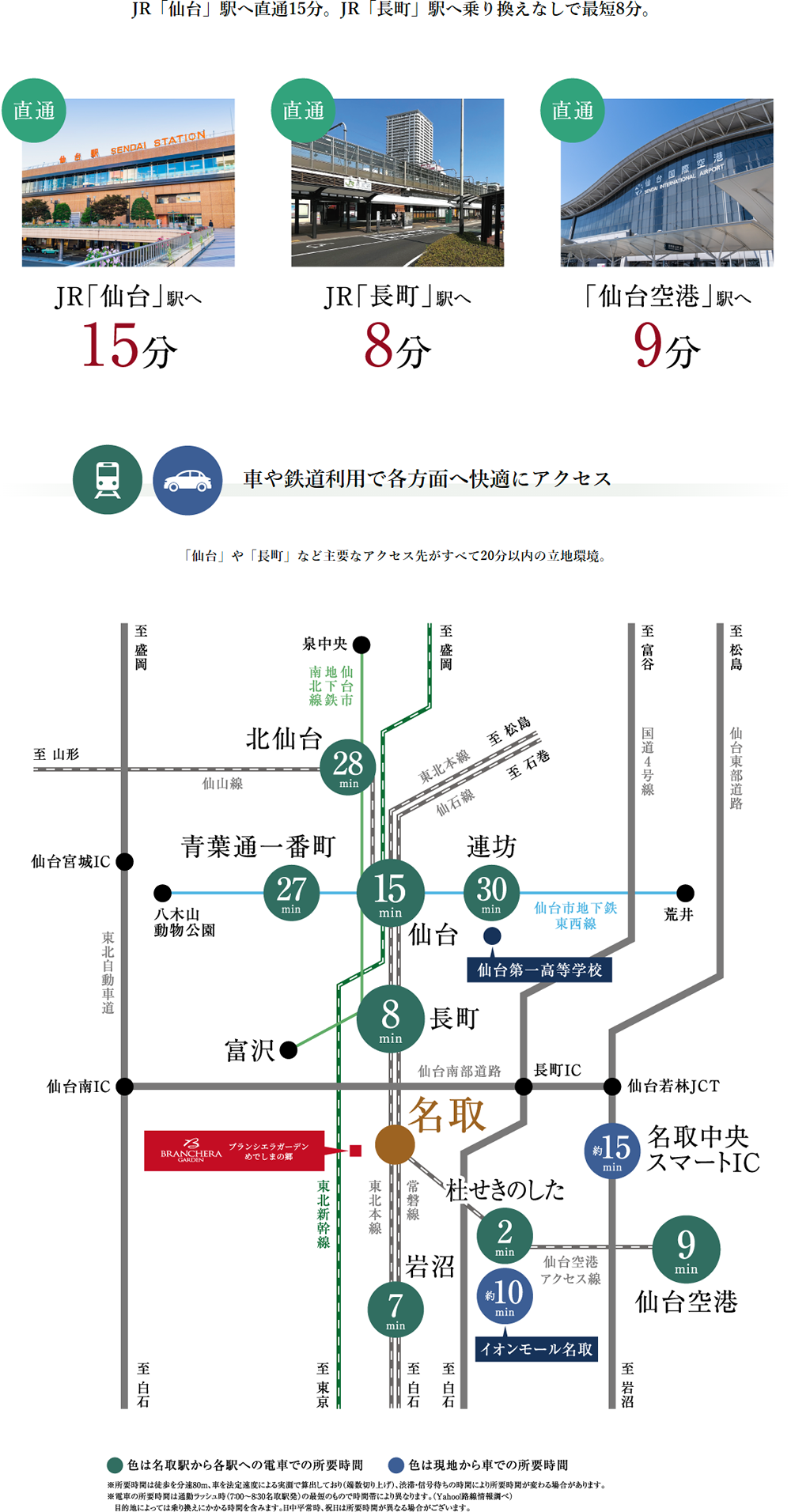 JR市民バス「なとりん号」など交通手段も豊富なので通学・通勤にも便利。また、マイカーで各方面へのアクセスもスムーズ。
